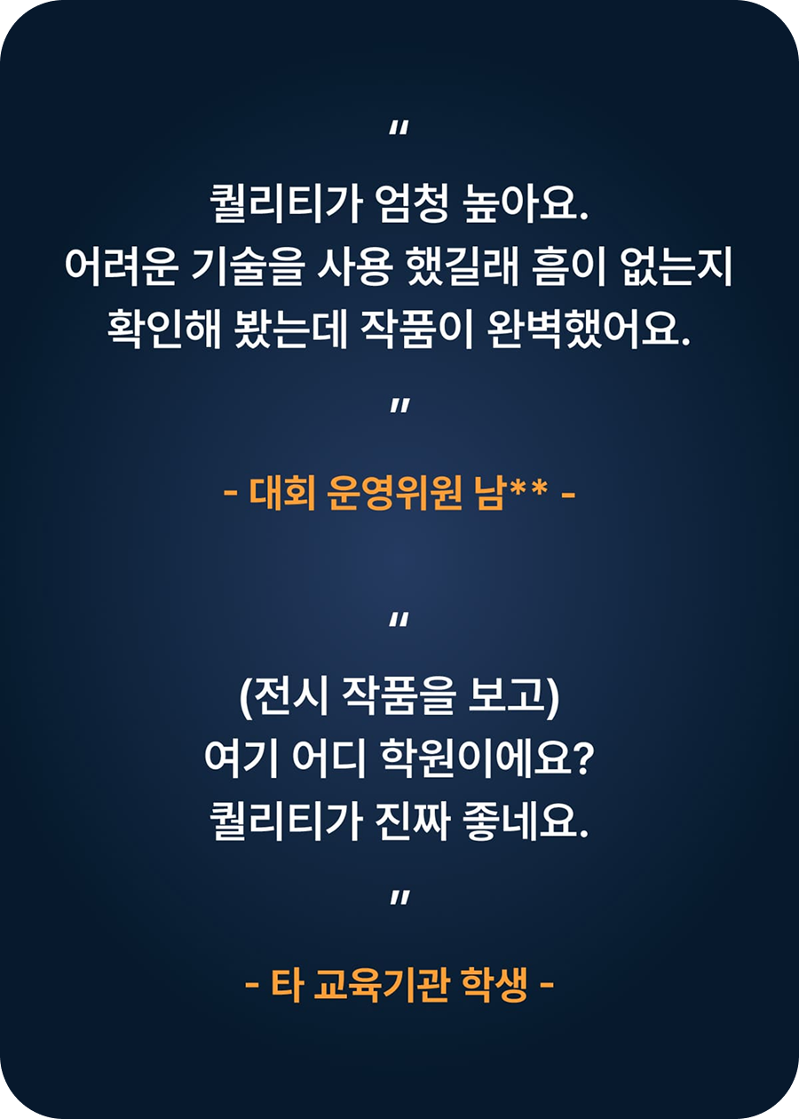 수업마다 세세하게 잡아주는 코칭 덕분에 작품 완성도가 눈에 띄게 높아져 ‘왜 최고의 교육인지’ 체감했어요