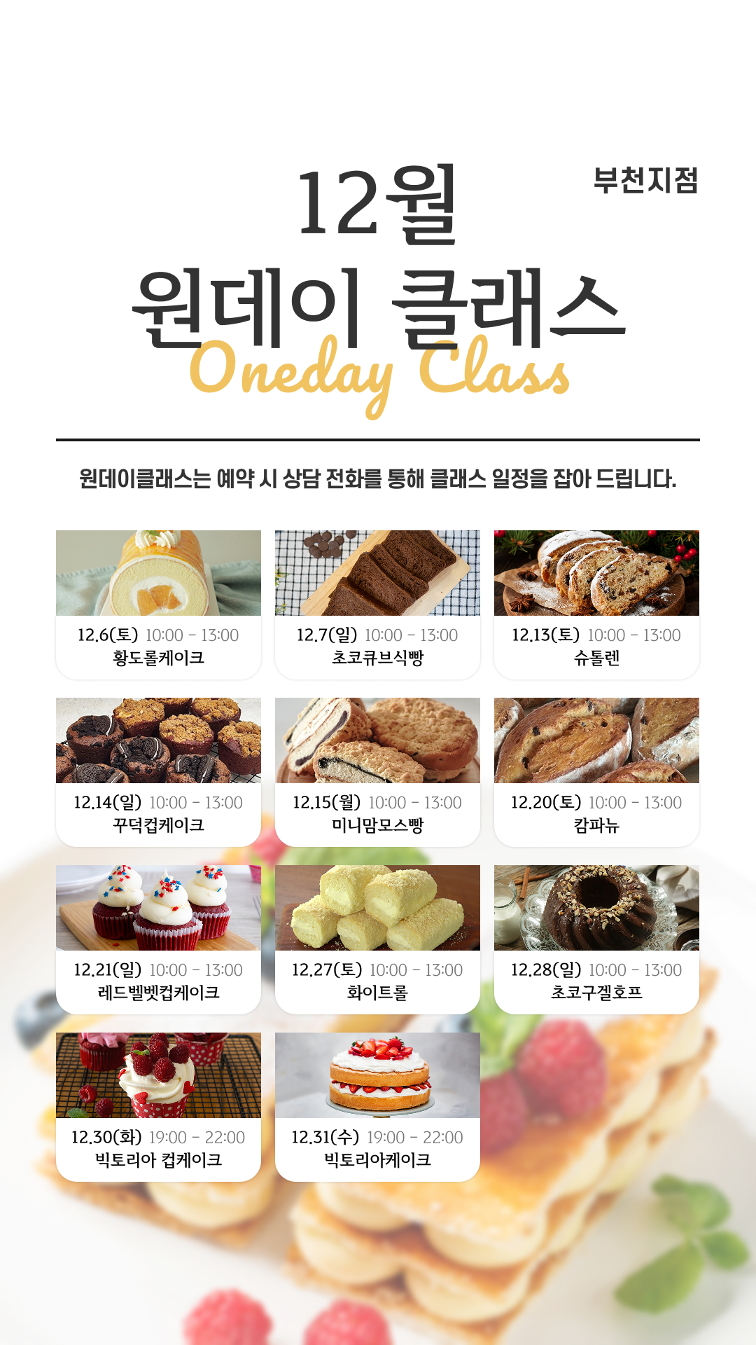 12월 지점별 원데이 클래스